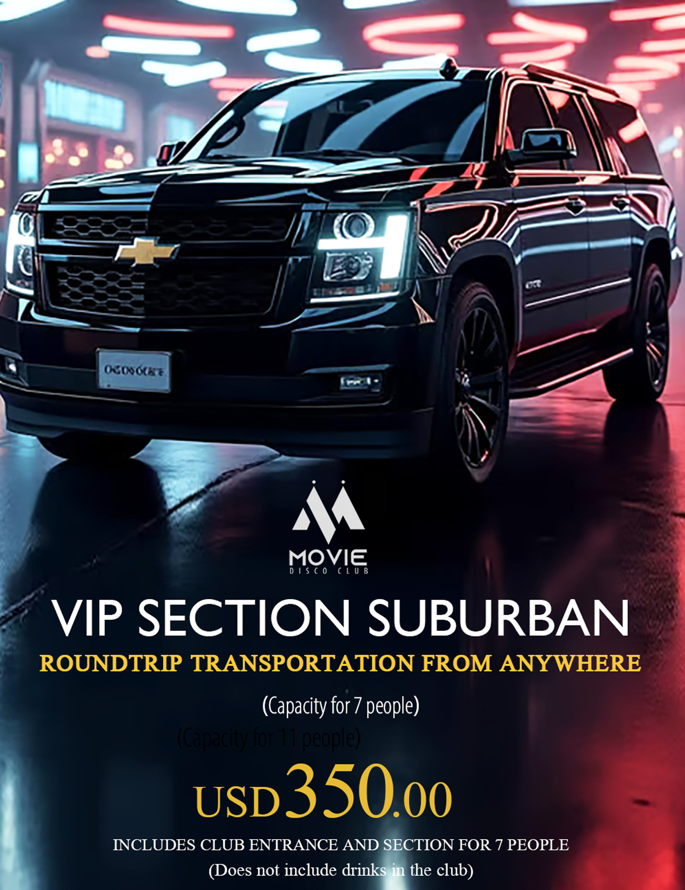 Transporte privado ida y vuelta desde cualquier lugar en Punta Cana, Incluye entrada al club, mesa VIP, hasta 7 personas.